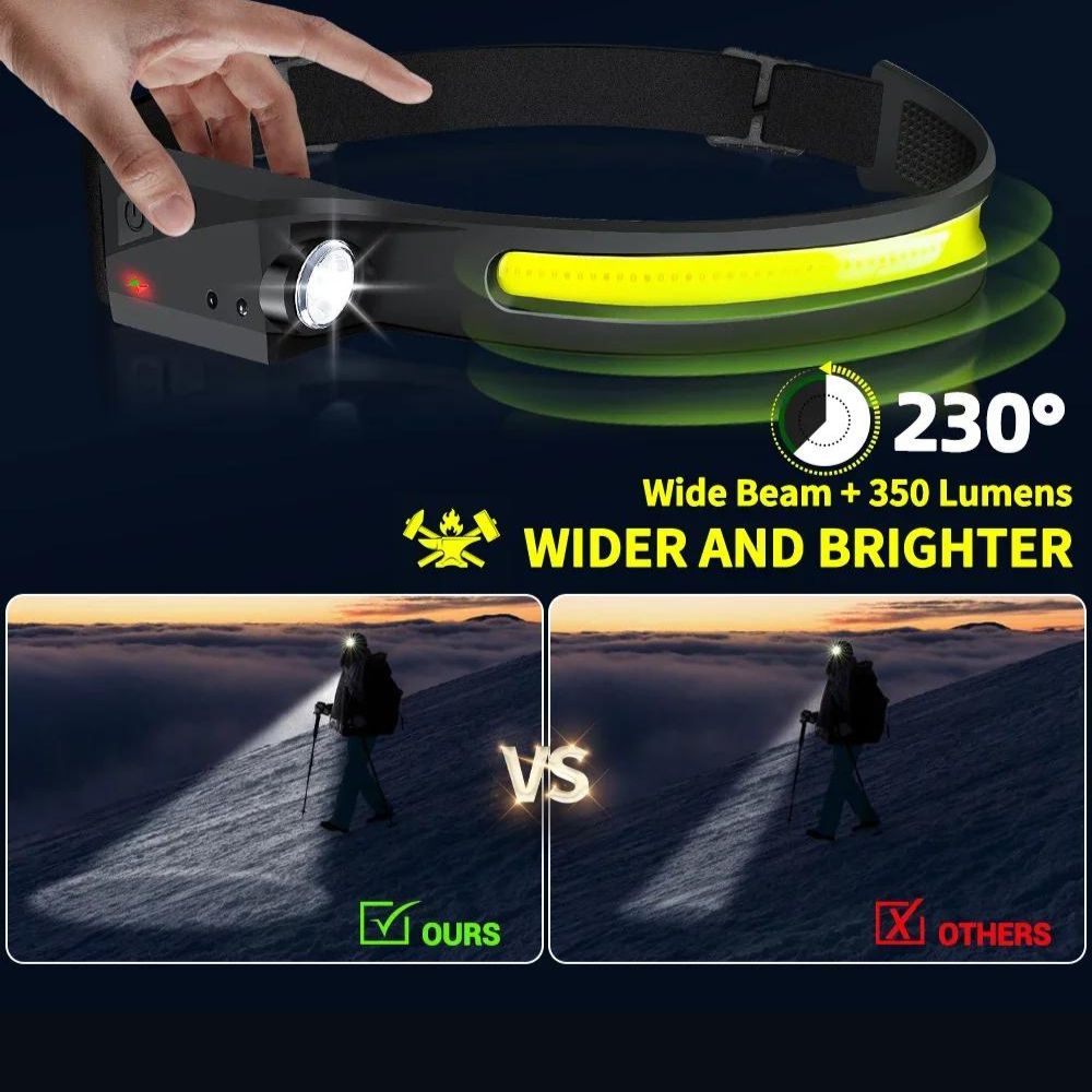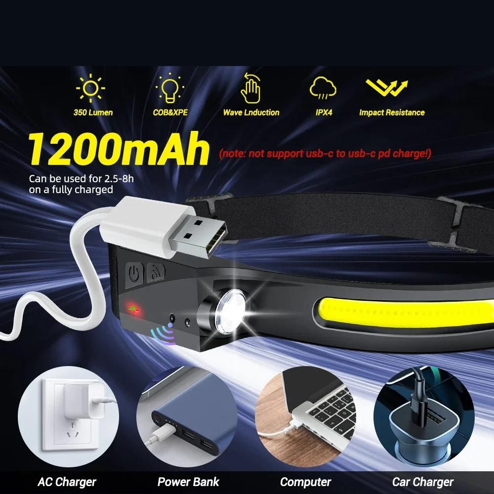 Mit einer Helligkeit von bis zu 350 Lumen und vier Beleuchtungsmodi - darunter starker und mittlerer COB-Lichtmodus sowie XPE-Fernlicht - bietet diese Stirnlampe eine flexible Beleuchtung in jeder Situation.
