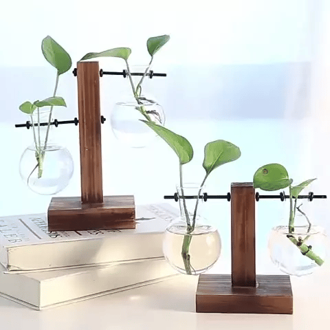 Transparente Glühbirnenvase mit Holzständer | Hydroponik