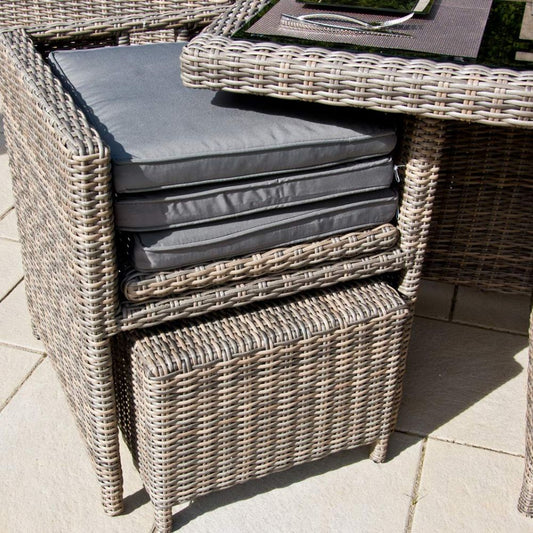 tectake® poly rattan lounge seating group with sofa, armchair, stool and table: Weatherproof