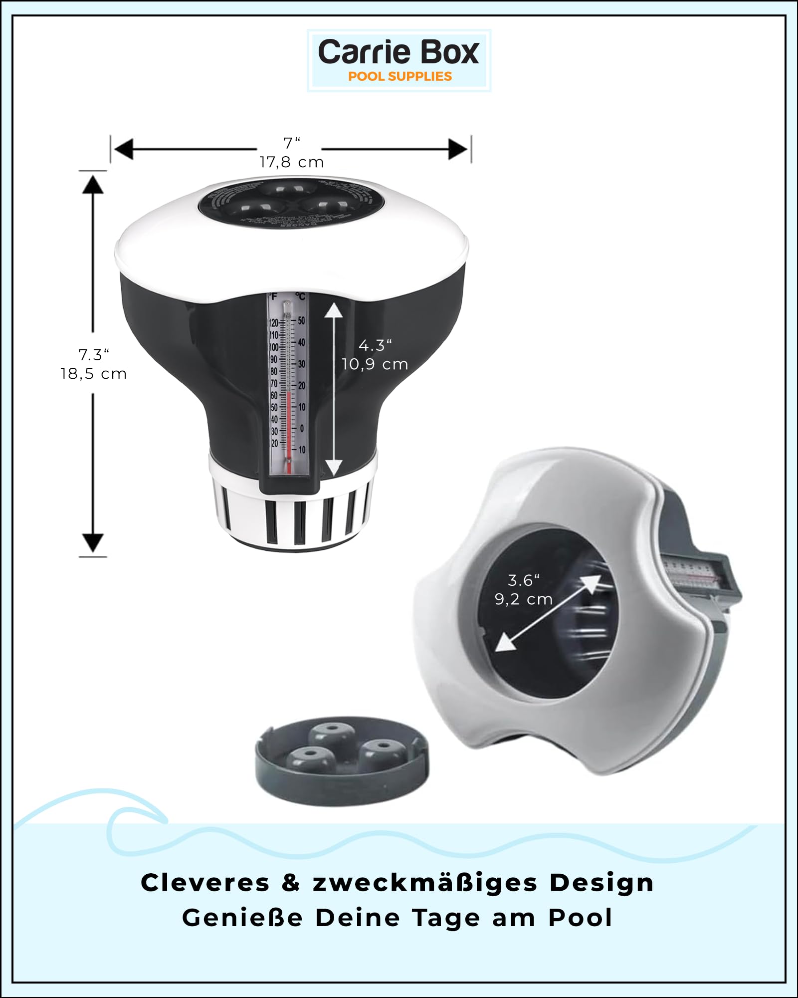 Carrie Box Dosing Float incl. Thermometer: Chlorine Dosing Device, Adjustable, 20 to 200g