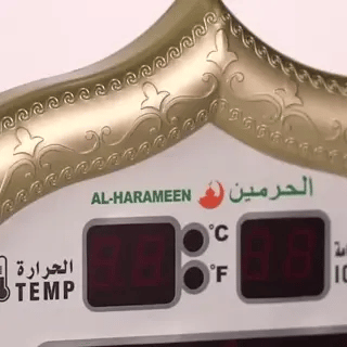 The alarm function reliably reminds of prayer times with traditional Adhan or a beep. In addition to the prayer alarm function, the clock features a calendar displaying the Islamic lunar calendar, world time, date, and day of the week.