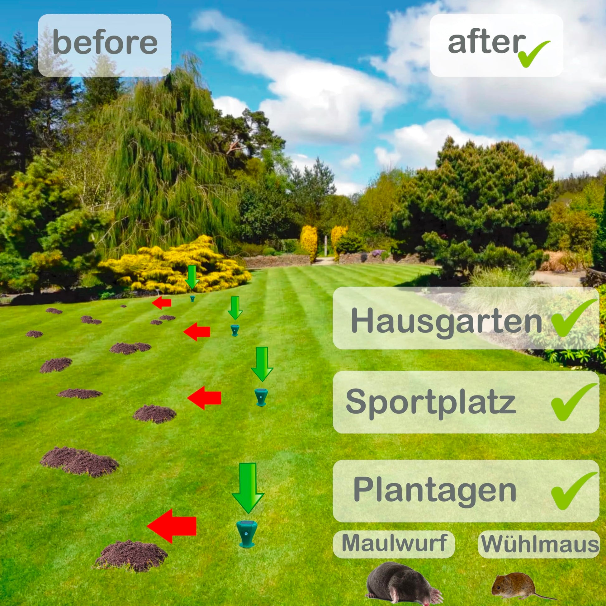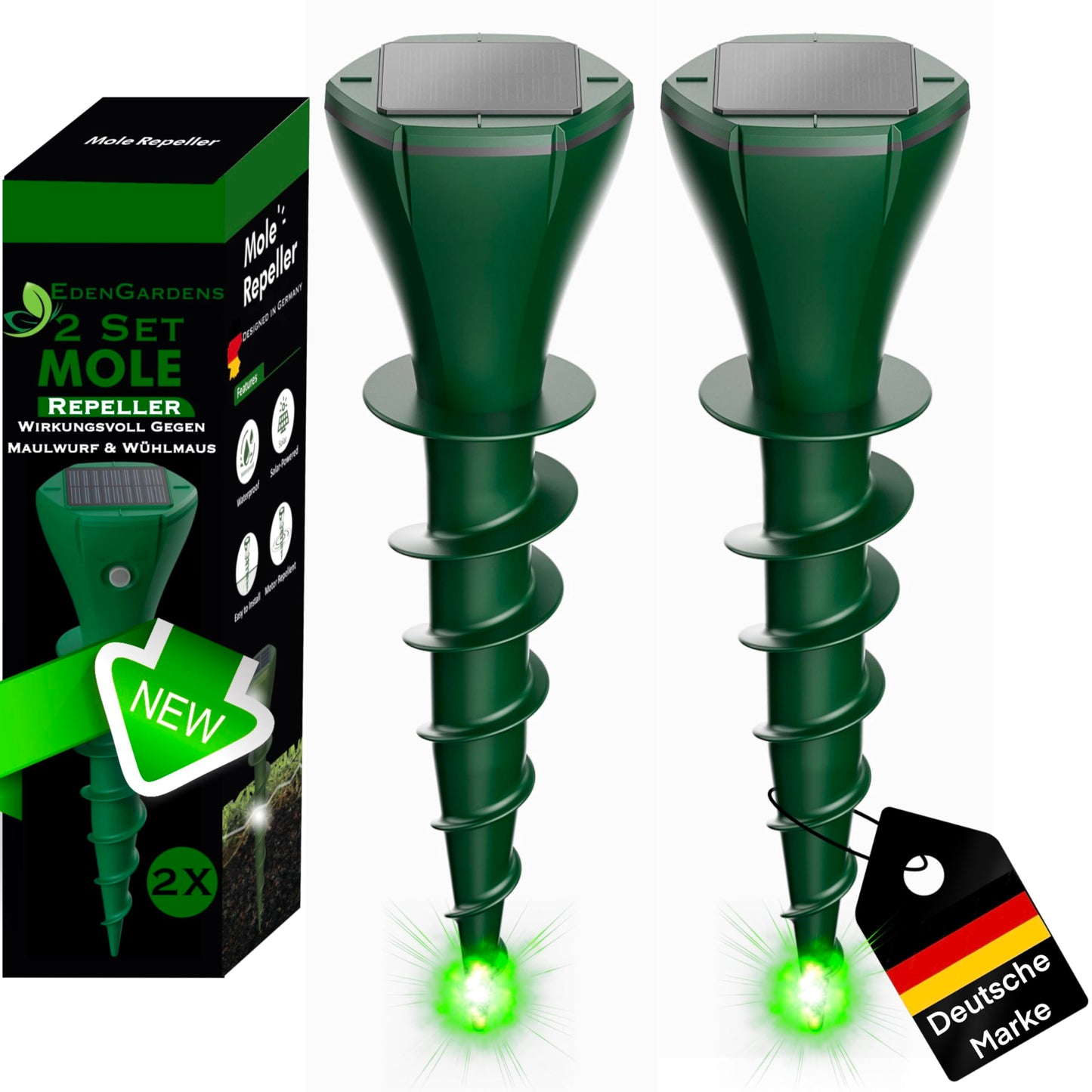 The EdenGardens MOLE Repeller (2-pack) reliably repels moles and voles – without poison or chemicals. Ideal for gardens, flowerbeds, or lawns – developed for golf courses, now available for your garden too!