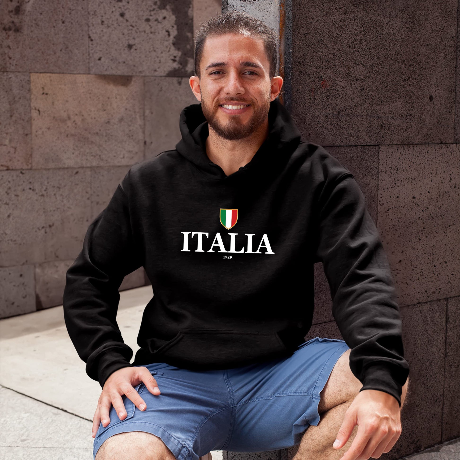 Show your support for Italy with this men's Italian hoodie . Perfect for rugby fans and players who want to cheer on their country in international competitions. Featuring an Italian flag and shield design, this classic hoodie makes a great gift for men for birthdays, Christmas, or any other occasion .