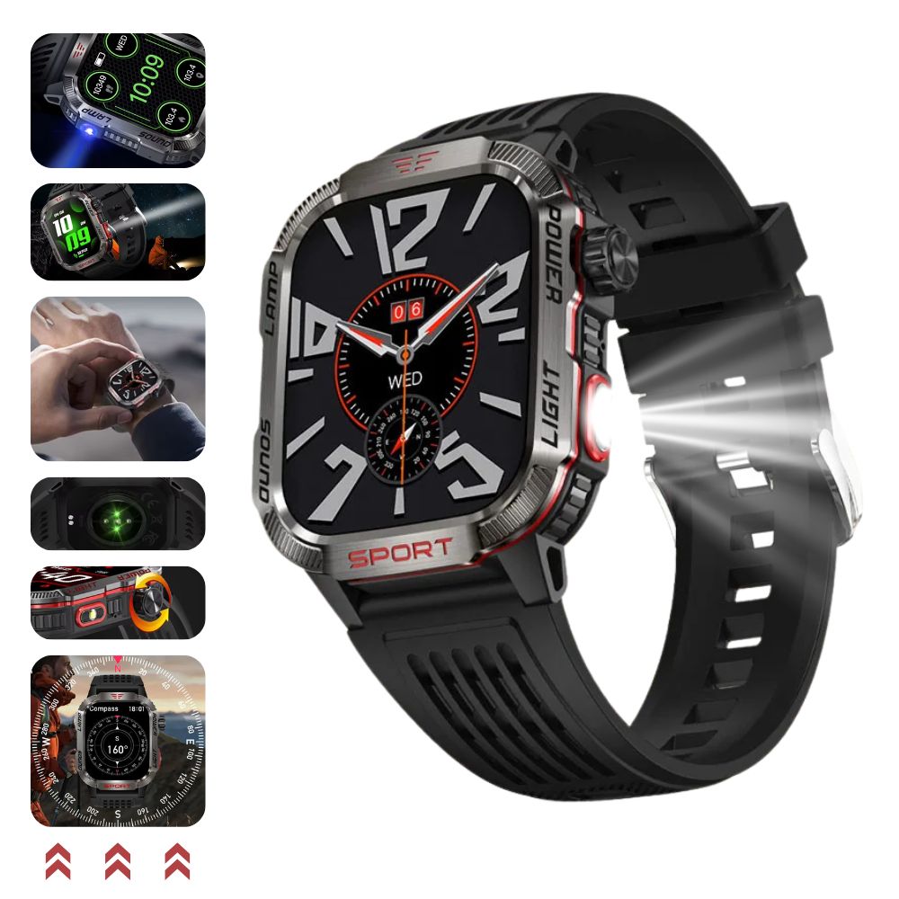Multifunction Military Smartwatch | Outdoor Fitness Tracker: BT Call, Bill Checker & Flashlight