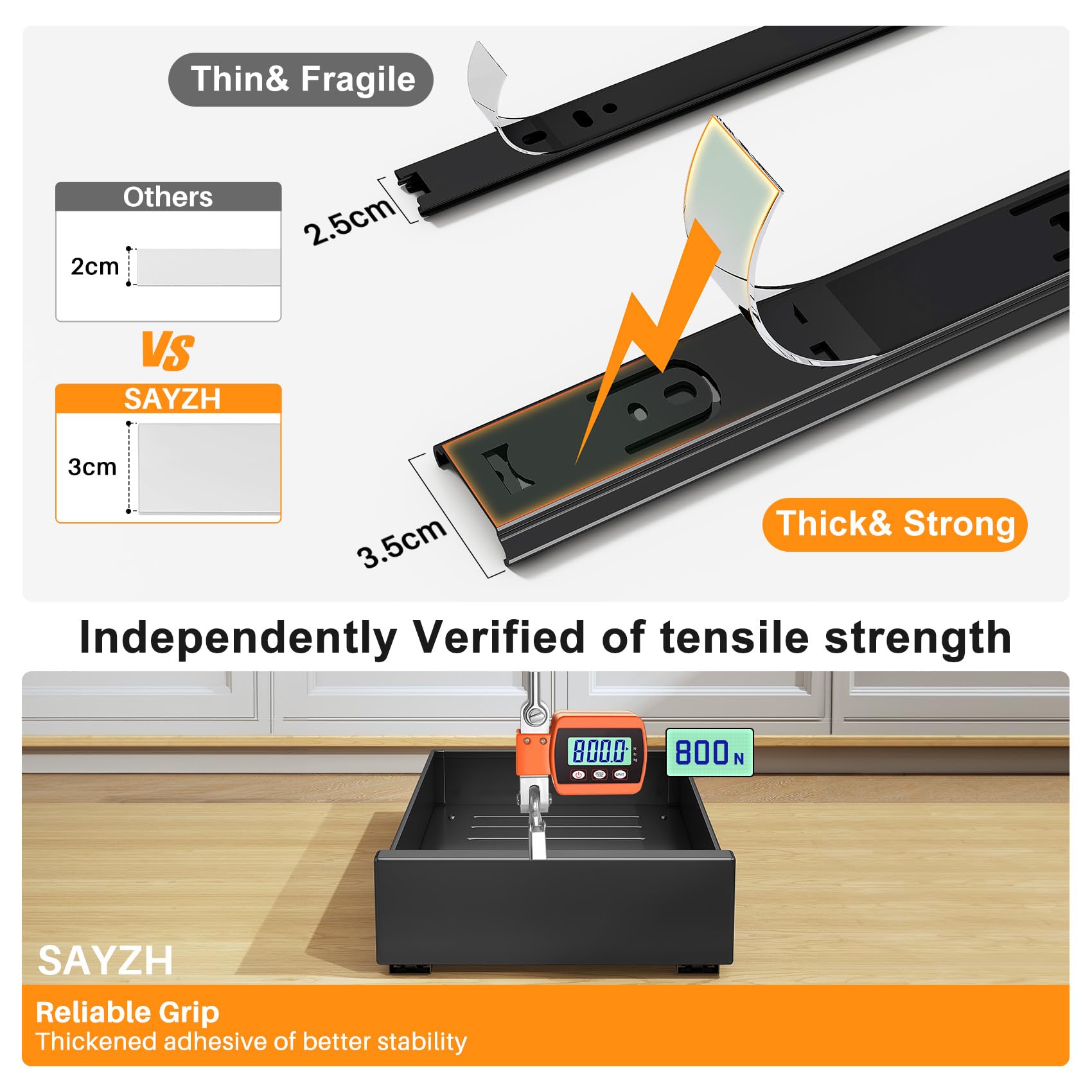 Tool-free installation : installed in just 1 minute, no drilling or screwing required
