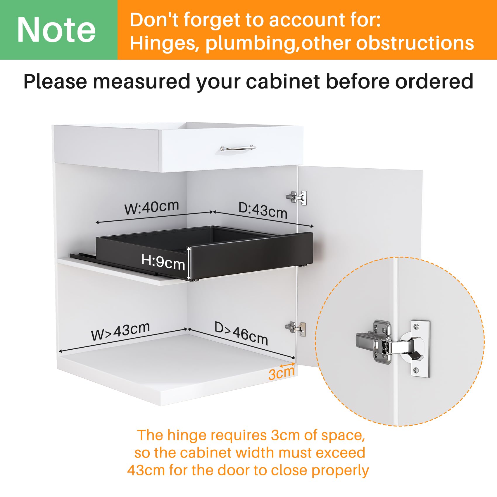 Extendable telescopic drawer storage shelf (43x40x9cm): No drilling or nailing