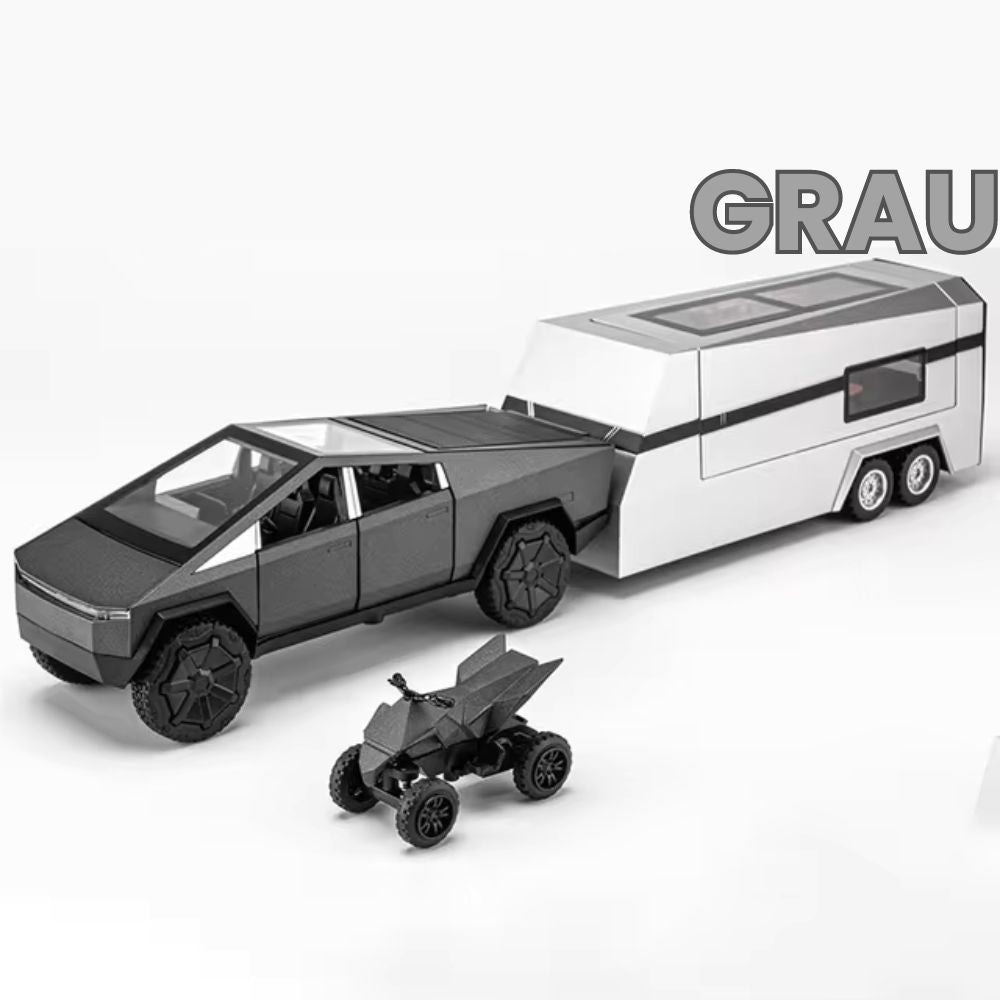 Discover the TESLA Cybertruck model car with trailer and beach motorcycle - a must-have for every car enthusiast, young and old!