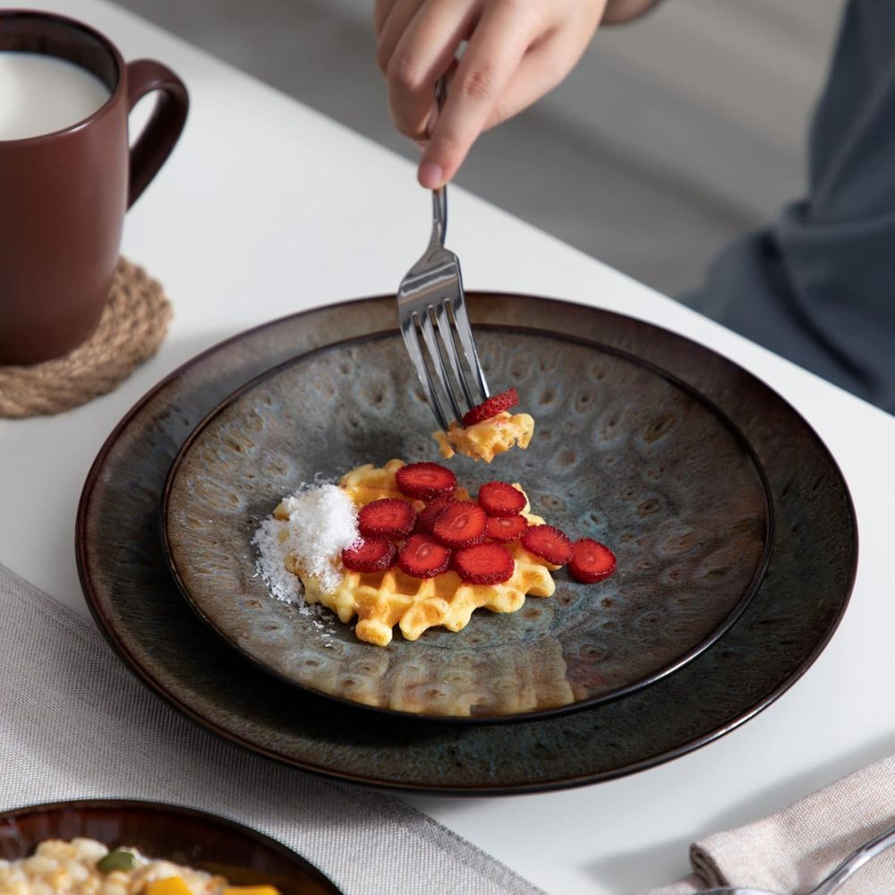 Made from high-quality and environmentally friendly stoneware, the tableware set is: