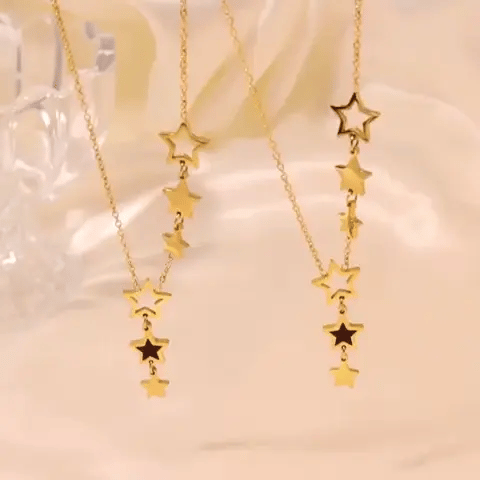 Collier pendentif étoile tendance pour femme | Acier inoxydable titane plaqué or, acrylique noir
