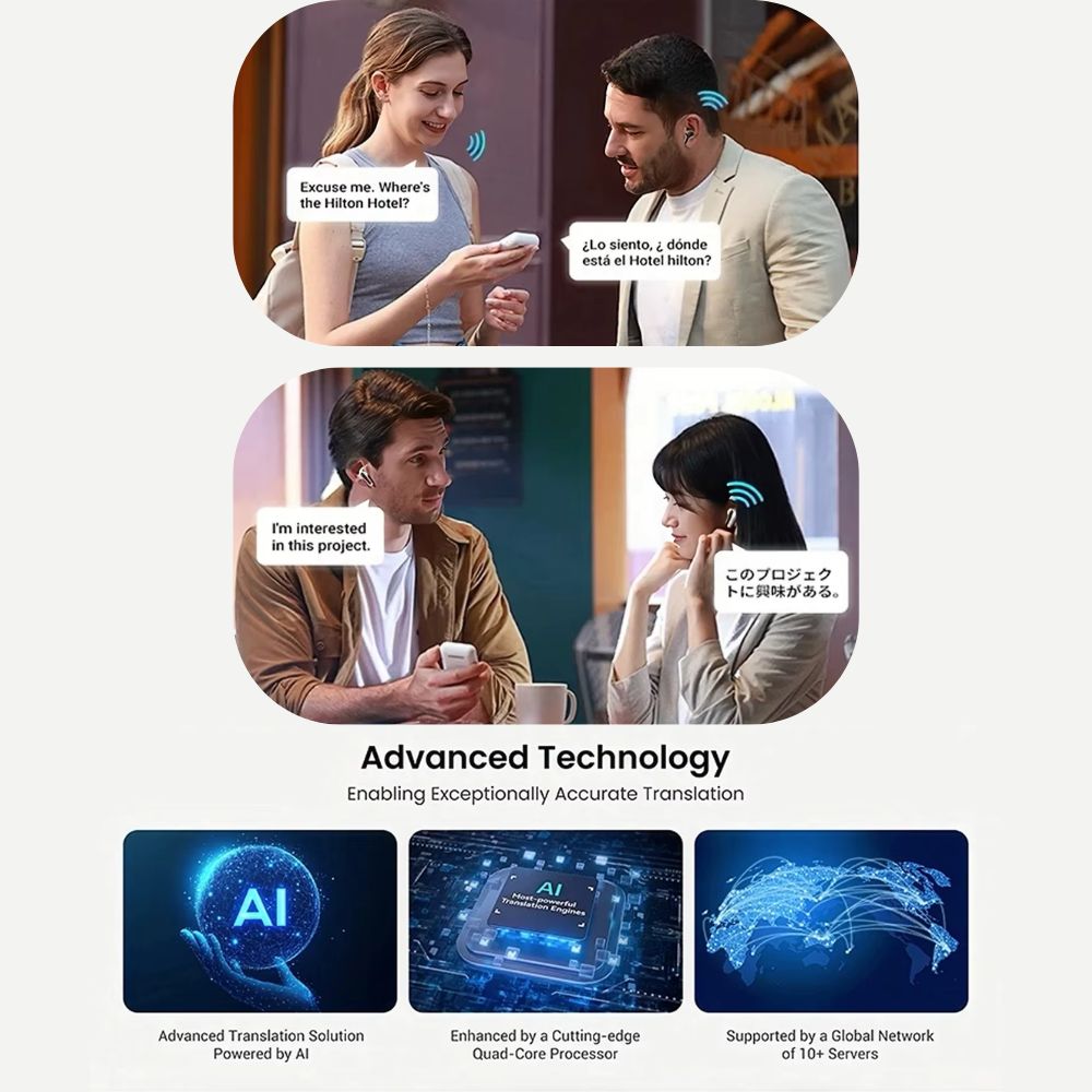 Avec une traduction en temps réel dans plus de 100 langues et une technologie d'IA avancée, vous pouvez facilement avoir des conversations, suivre des conférences ou participer à des réunions en ligne sans barrières linguistiques.
