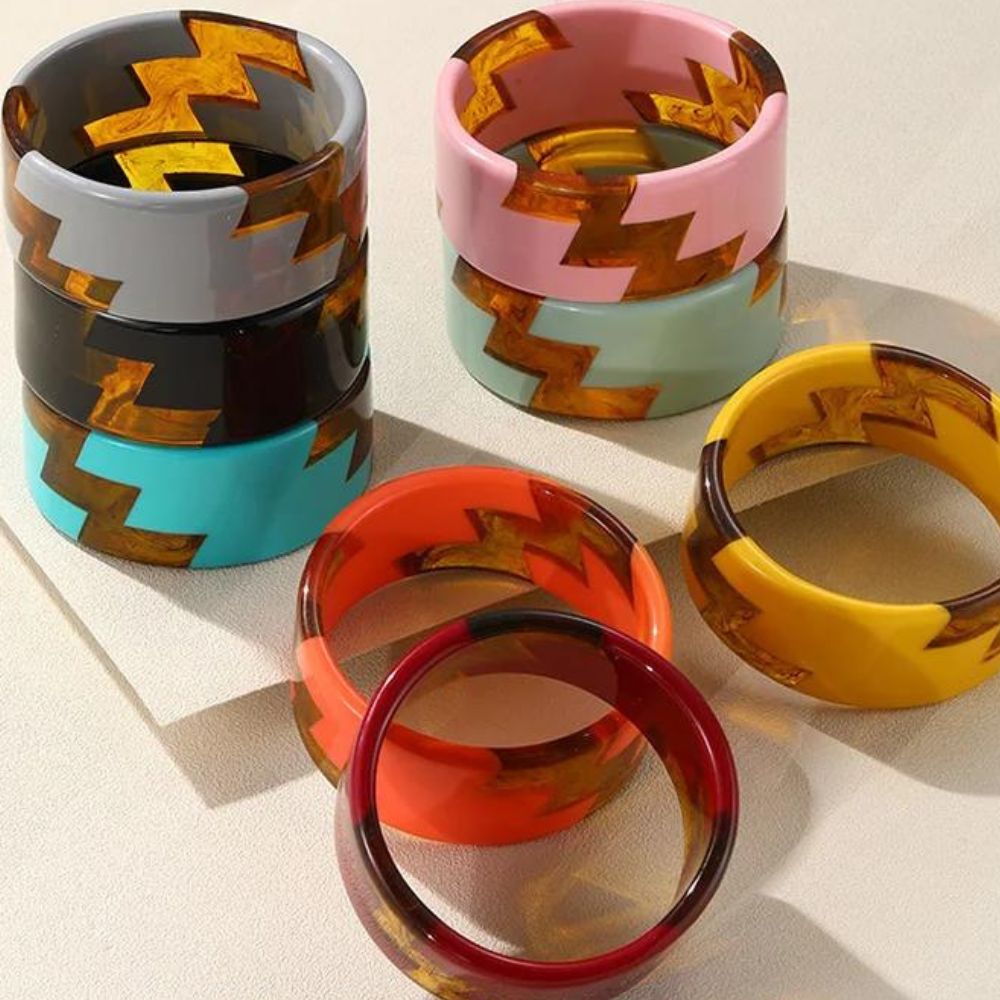 Découvrez la dernière tendance pour 2024 : des bracelets vintage en résine géométrique colorée pour femme !