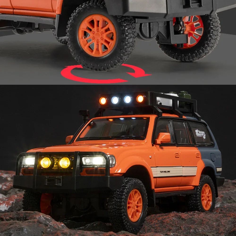 Voiture jouet tout-terrain TOYOTA Land Cruiser LC80 (1:24) avec lumière et son, fonction de rétro-traction (orange)