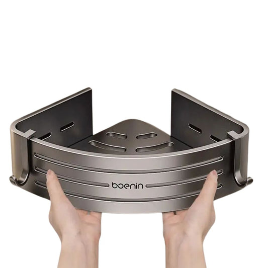 Elegante Eck-Duschablage mit Haken und Stange | Bohrfrei für Shampoo und Badzubehör