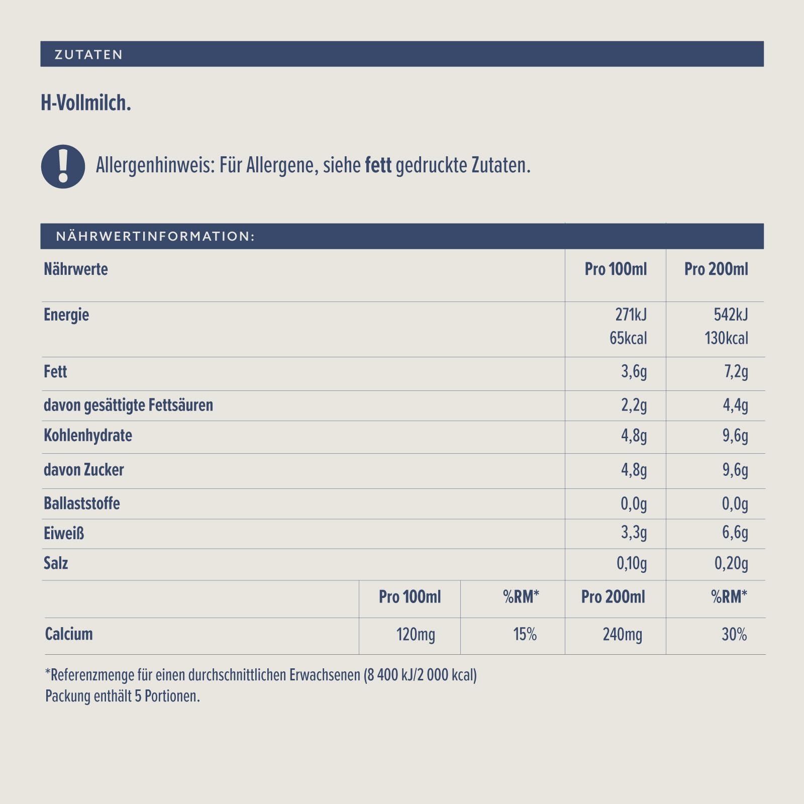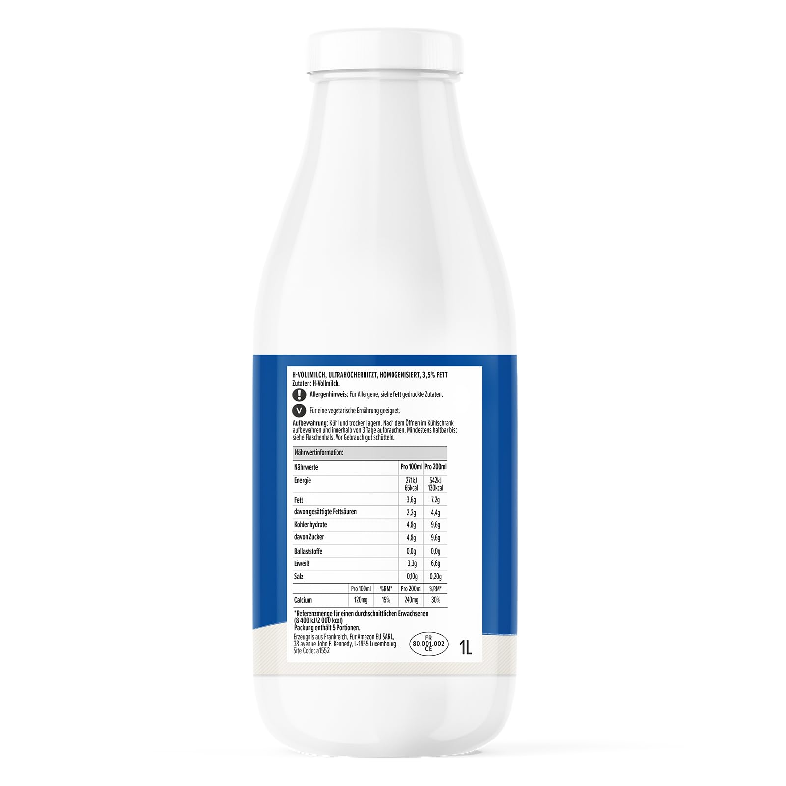 Haltbare Qualität von by Amazon: Ultrahocherhitzte H-Vollmilch mit 3,5 % Fett, homogenisiert für cremigen Geschmack.
