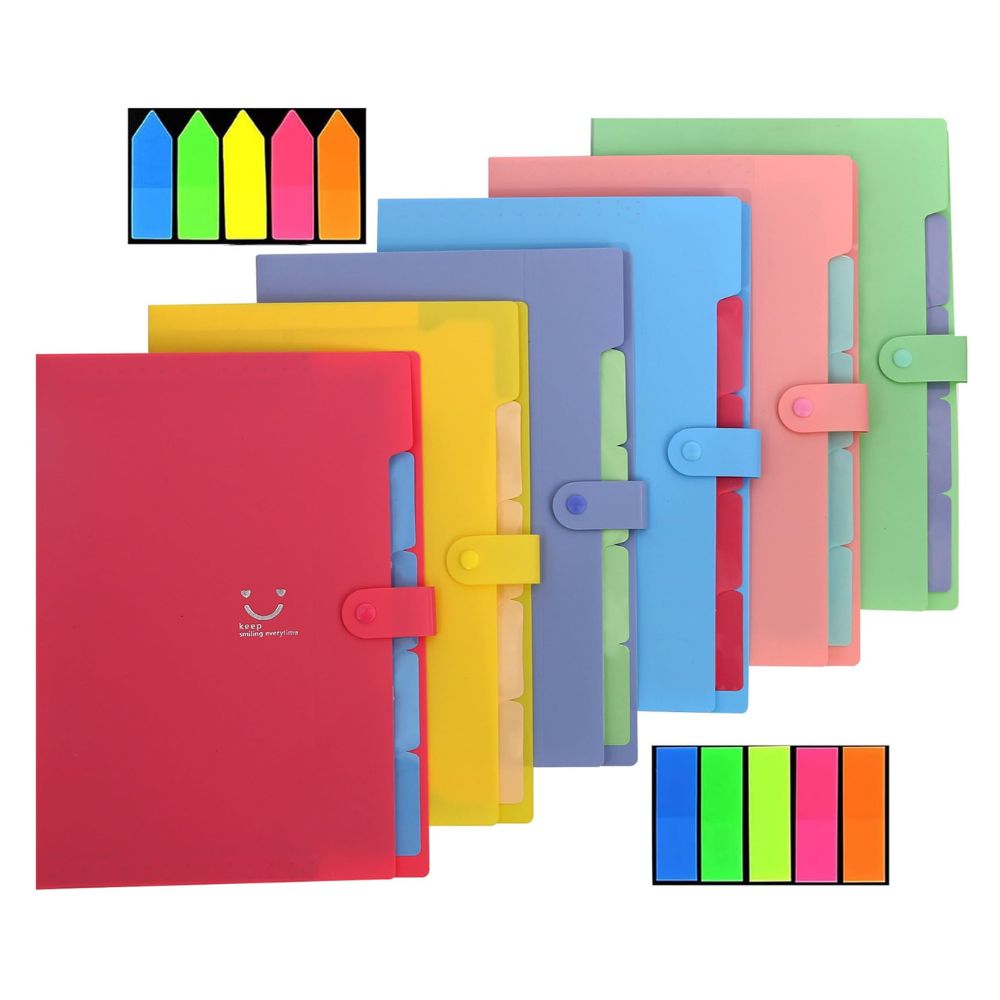 Dokumentenmappe in A4-Format (6 Stück): Ordnungsmappe mit 5 Fächern & Haftnotizen