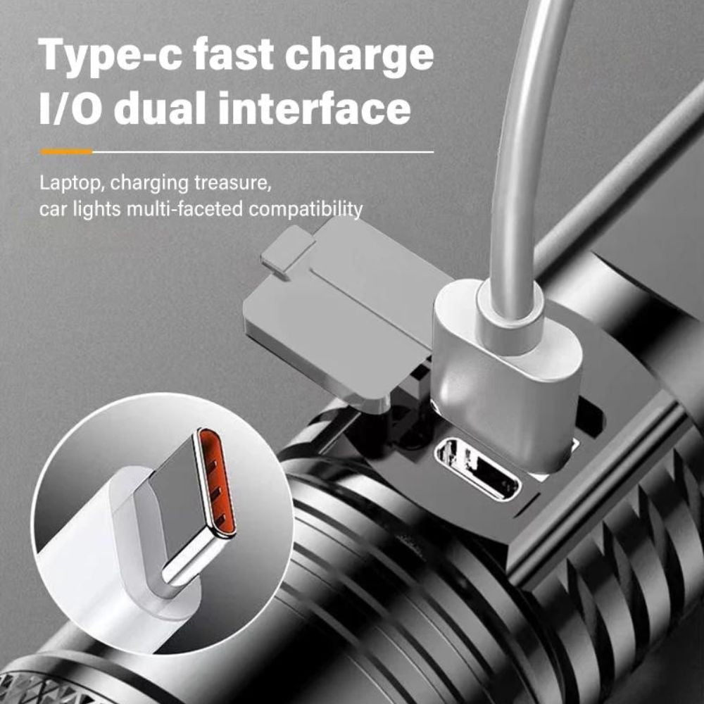 Dank des bequemen Typ-C-Lademodus ist die Taschenlampe schnell und einfach wiederaufladbar.