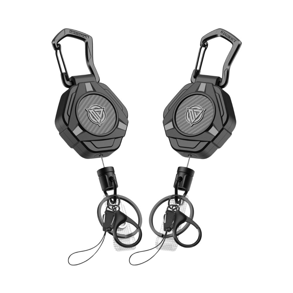 Robuster & stilvoller Schlüsselhalter mit Magnetkraft, Carbon-Look und ausziehbarem Edelstahlseil