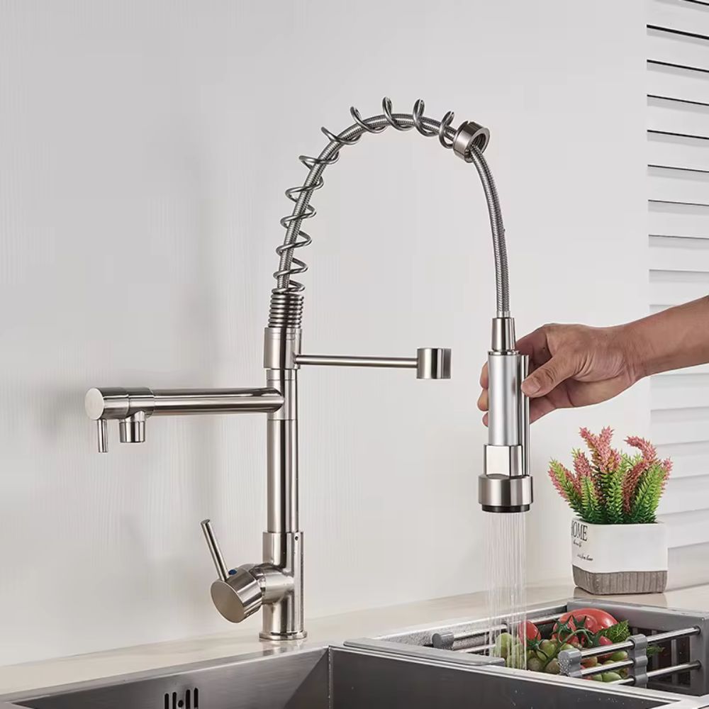 Doppelfunktionaler Wasserfluss: Profitieren Sie von zwei Wasserflussmodi: Der Vorspülsprüher bietet einen starken Sprühstrahl zum Entfernen von Speiseresten, während der belüftete Strahl ideal zum Befüllen großer Töpfe und Pfannen ist. Das Besondere: Sprühgerät und Topffüller können gleichzeitig betrieben werden, was die Küchenarbeit erheblich erleichtert.