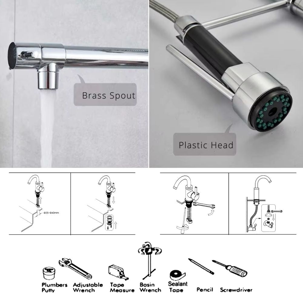 - Materialien: Armaturenkörper aus Messing, Sprühkopf aus ABS-Kunststoff