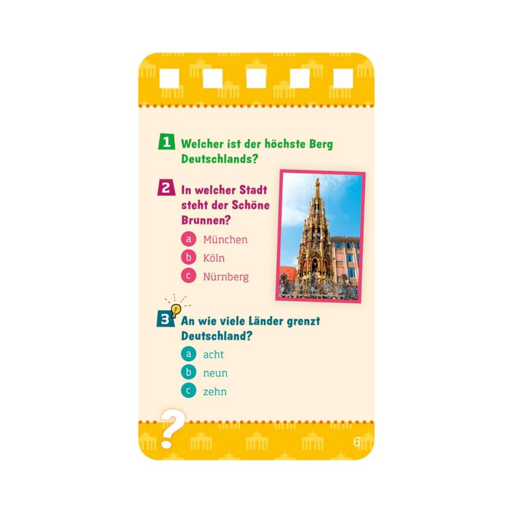 100 Fragen von leicht bis echt knifflig zu Deutschland und seiner Geschichte präsentiert dieser kurzweilige Quizblock. Ob zu Hause oder unterwegs, dank des praktischen Hosentaschenformats ist der kleine Ratespaß jederzeit griffbereit und kann allein oder zu mehreren gespielt werden. Für jede richtige Antwort gibt es einen Punkt. Perfekt für alle Ratefans, die sich einmal quer durch Deutschland quizzen wollen!