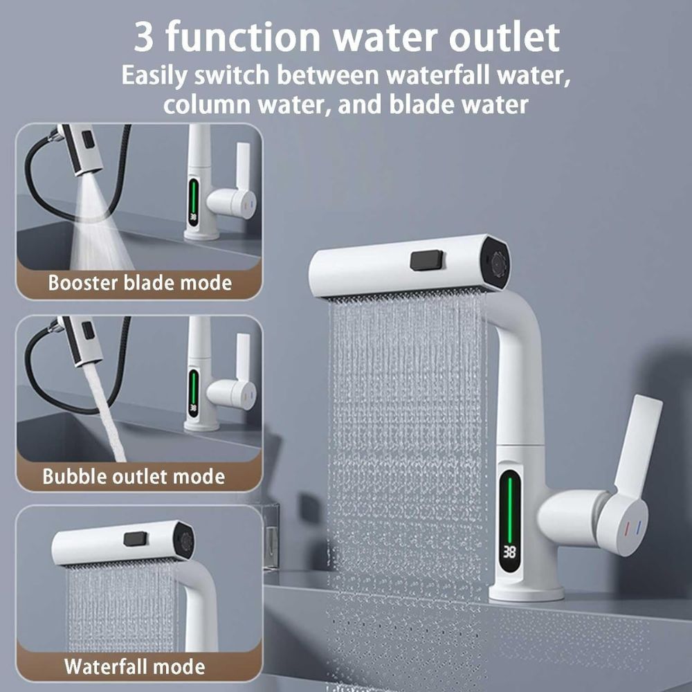 LED-Digital Wasserfall Küchenarmatur: 3-in-1 Schwenkbar
