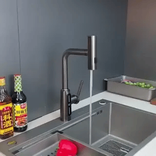 Durchdachtes Design: Dieser Wasserhahn bietet eine 90° Drehung, Ausziehen und Anheben sowie einen 360° drehbaren Schwenkarm mit einem ausziehbaren Rohr von 60cm. Ein Wasserhahn, der alle Ihre Bedürfnisse erfüllt!