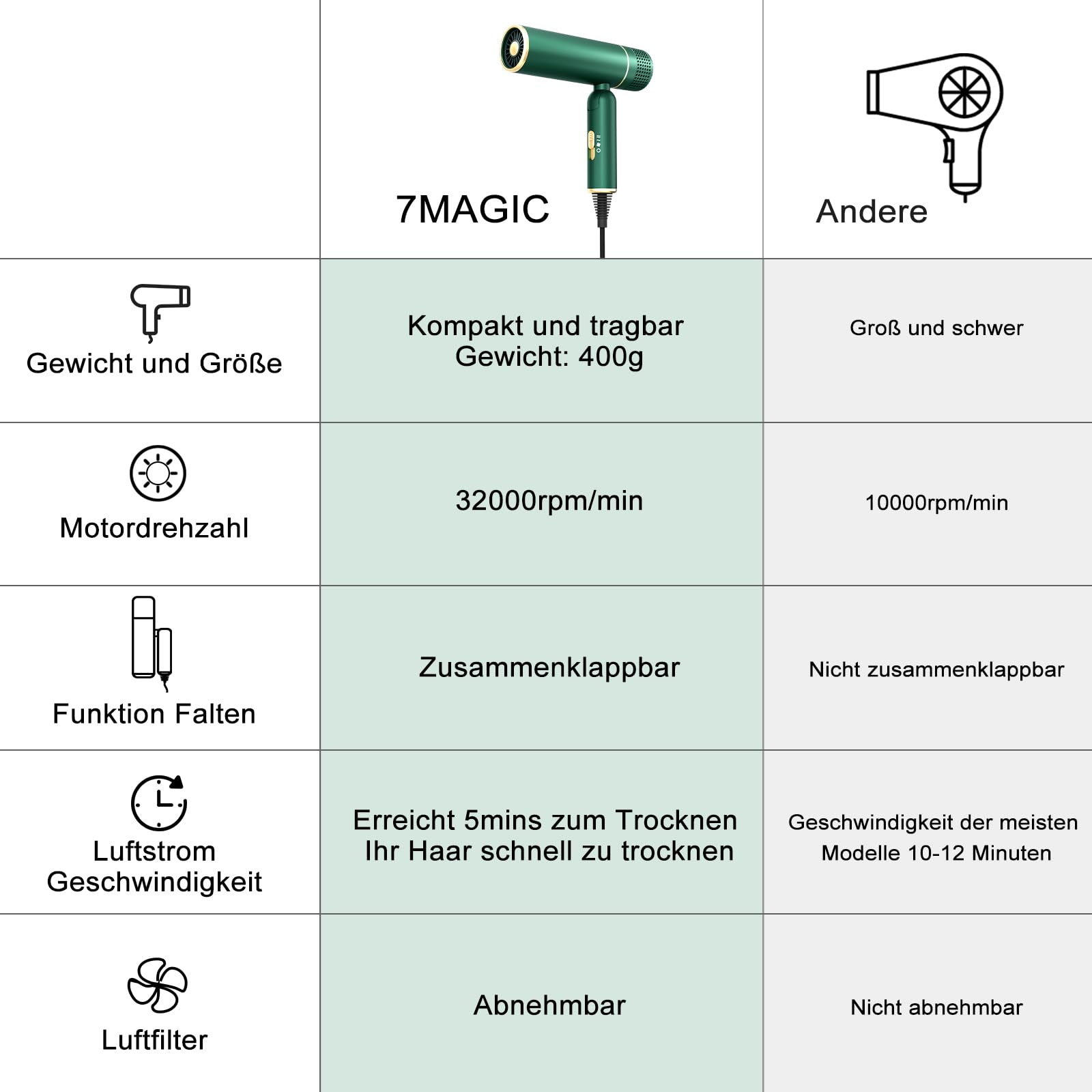 7MAGIC Haartrockner | Ionen-Technologie für glänzendes, geschmeidiges Haar