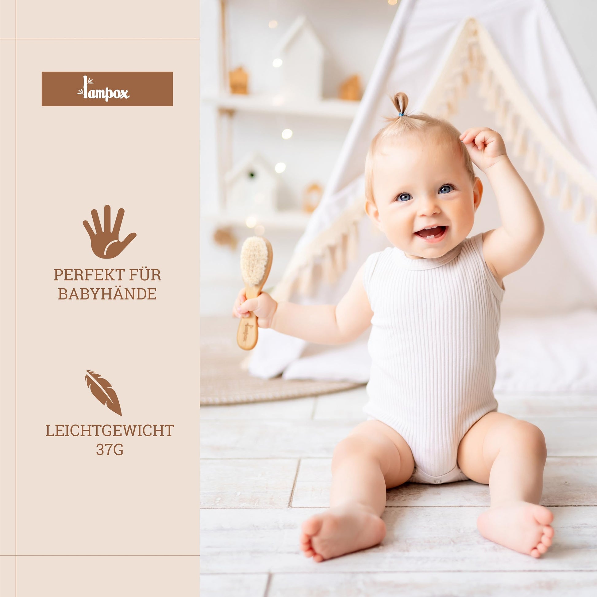 lampox Babybürste - ein unverzichtbarer Begleiter für die tägliche Babypflege. Sanft. Sicher. Natürlich.